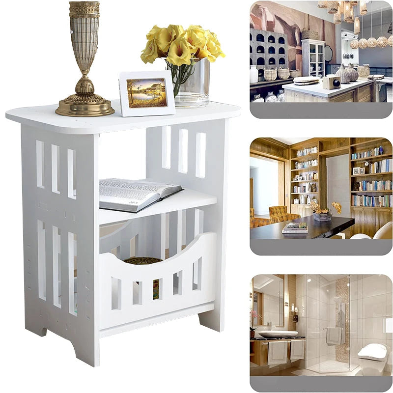 Minimalistinis modernus šoninis staliukas, puikiai tinkantis miegamajam, svetainei ar biurui. Turi trijų sluoksnių dizainą, užtikrinantį praktišką daiktų laikymą. Pagamintas iš aukštos kokybės ekologiško plastiko, garantuojančio ilgaamžiškumą ir stabilumą.